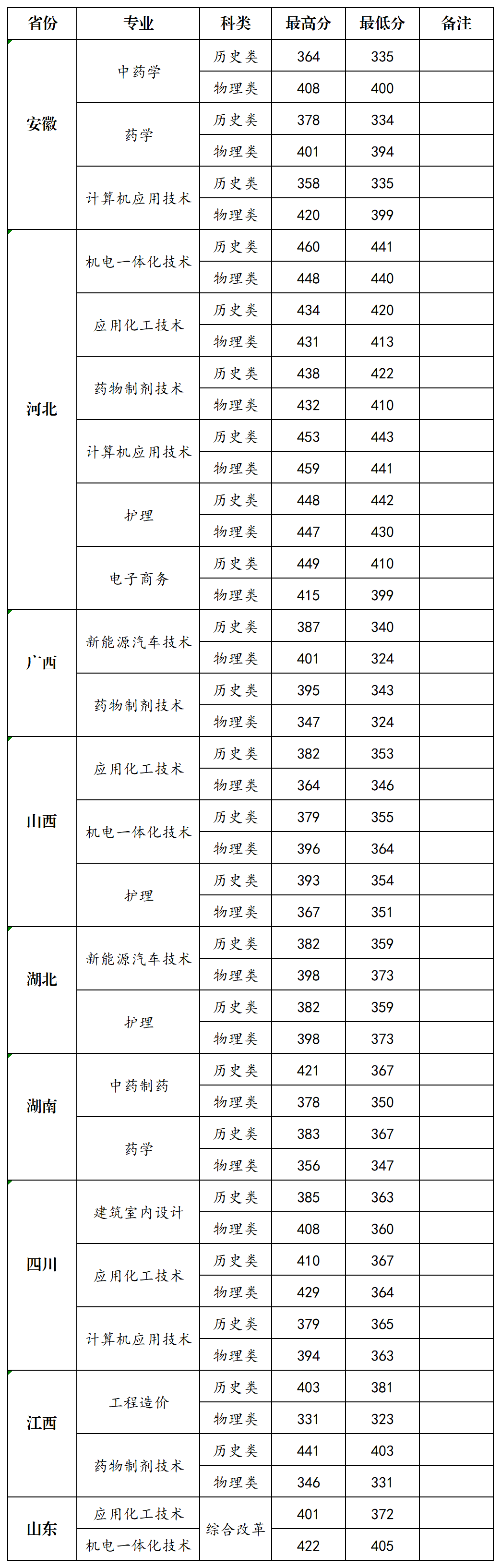 2025年普招外省录取分数统计表