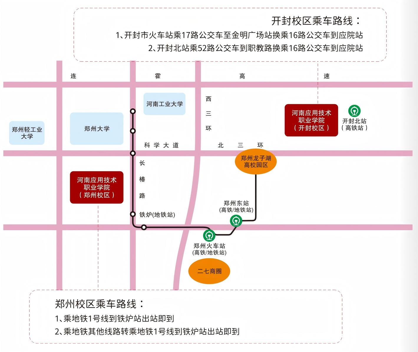 2、开封北站乘52路公交车到职教路换乘16路公交车到应院站